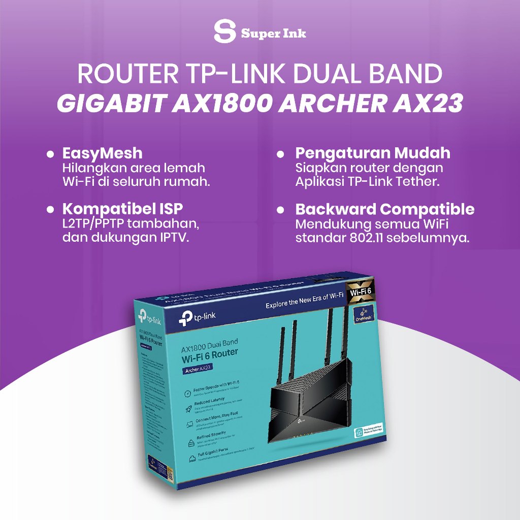 TP LINK Archer AX23 AX1800 Dual Band Wifi 6 1.8 Gbps Pemancar Sinyal Internet Network Wireless