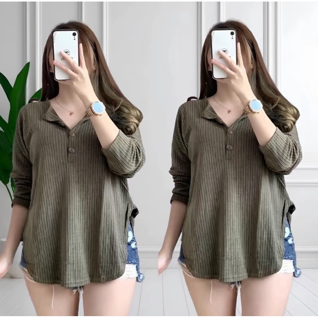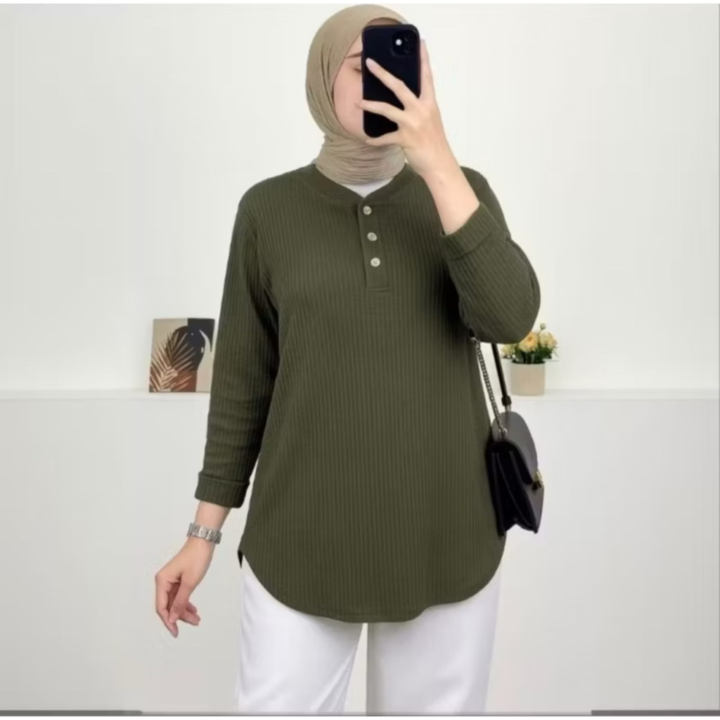 Kaos Blouse Wanita Waffle Premium Uniqlo Terbaru Atasan Wanita Polos Knit Lengan Panjang Terlaris