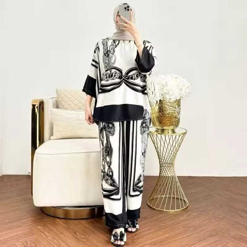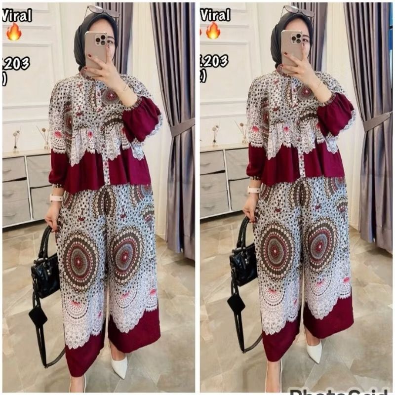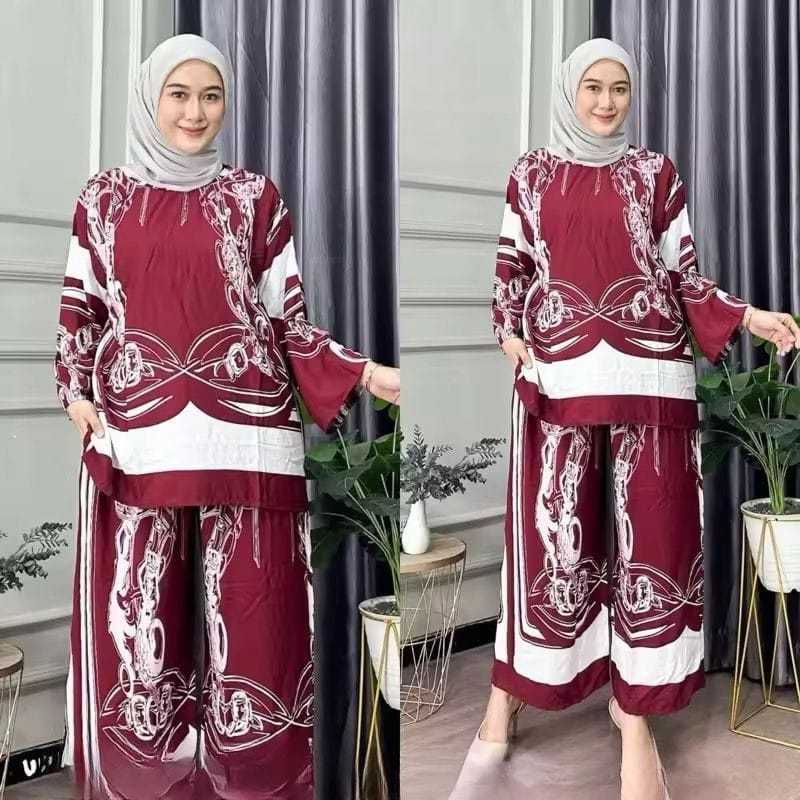 One Set Kemeja Lengan 7/8 dan Kulot Panjang Rayon Motif Adem dan Nyaman One Set Daily