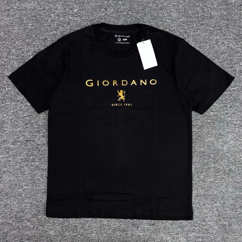 IDEAAL. CO |PROMO Baju Kaos Dewasa Kaos Distro Lengan Pendek Giordano Terbaru Text Gold Pria & Wanita Terlaris Combed Premium Quality