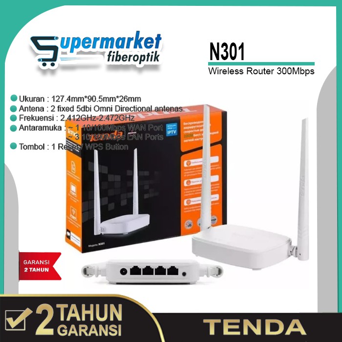 Tenda Router Wireless N301 300Mbps Antena 2