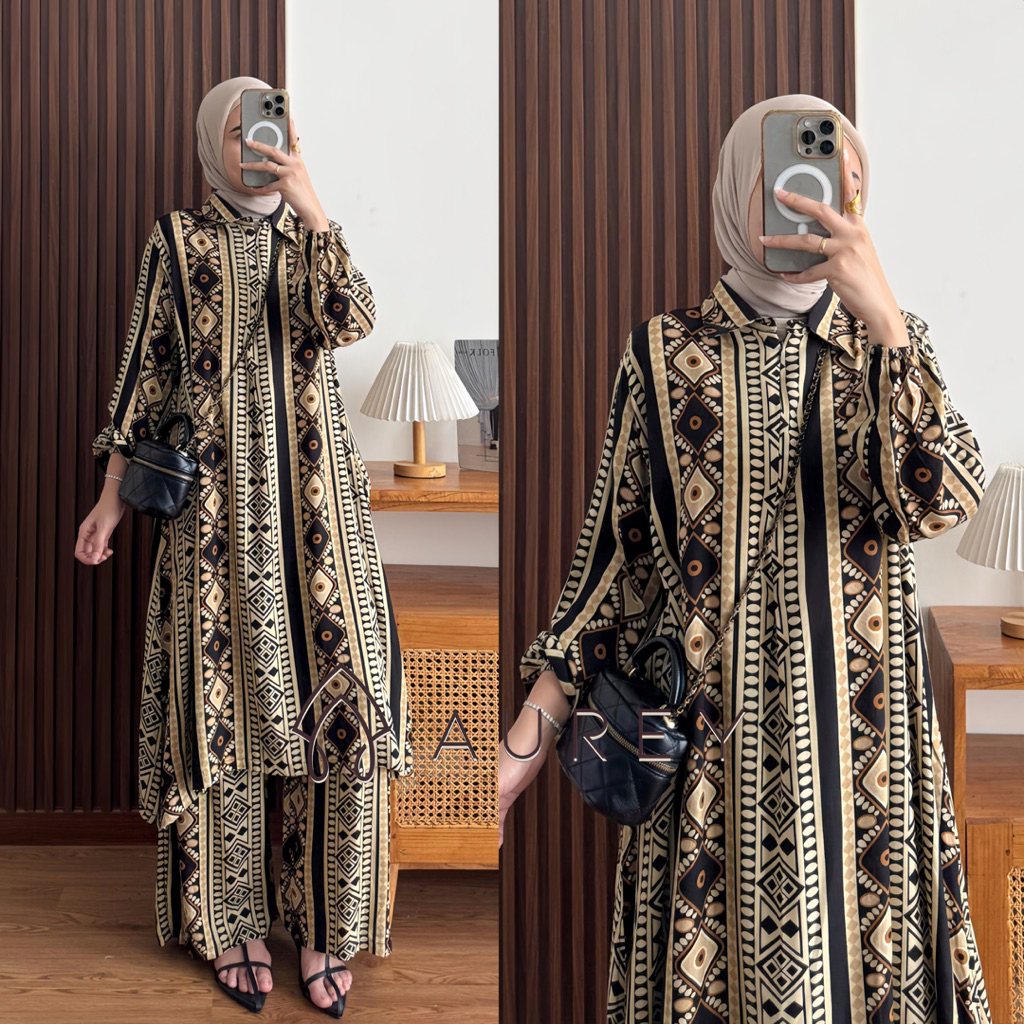 AUREY Oneset Tunik Tiora Setelan Tunik Panjang Motif Kekinian Terlaris Set Tunik Rayon