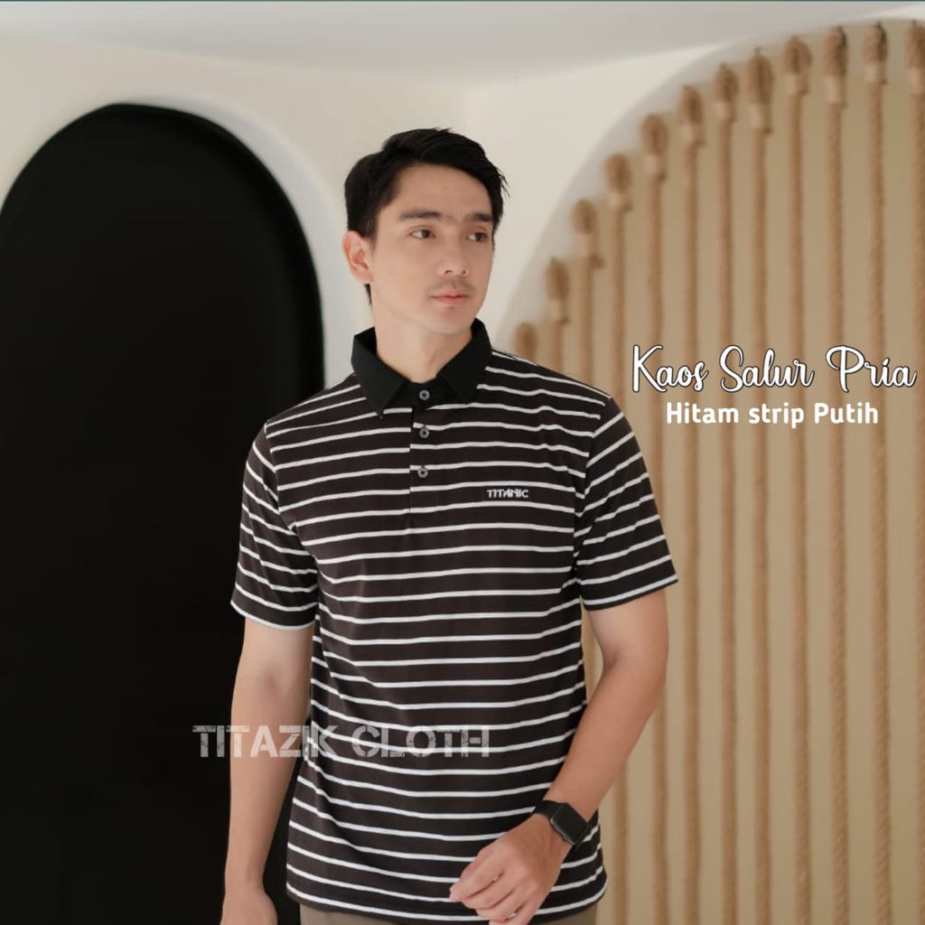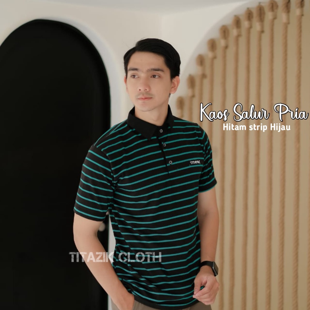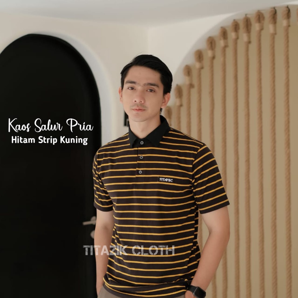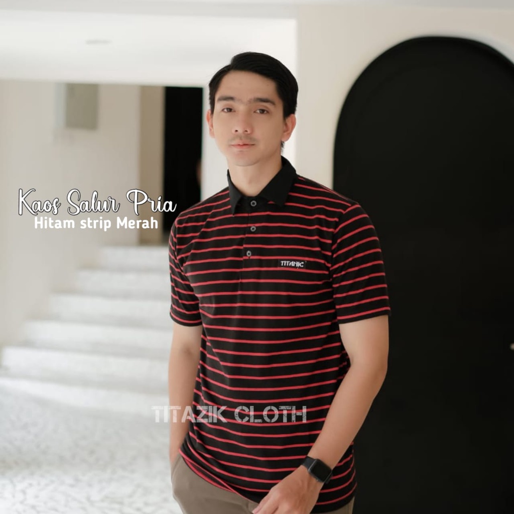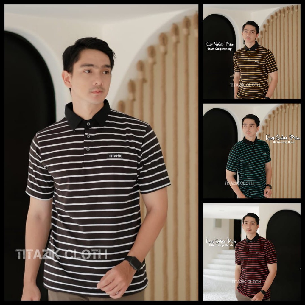 Kaos Pria Casual Motip Salur Tangan Pendek Ory/Murah Terlaris