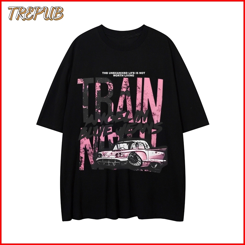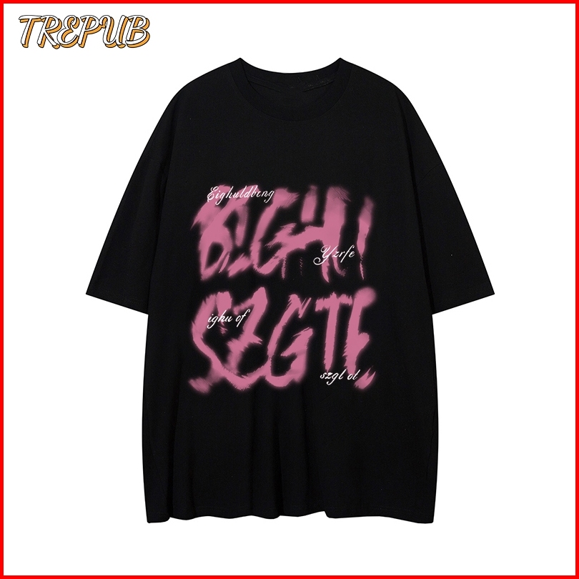 Codtrepub.t-shirt Oversize Pink Ink Letters Baju Kaos Korean Style Pria Wanita 149