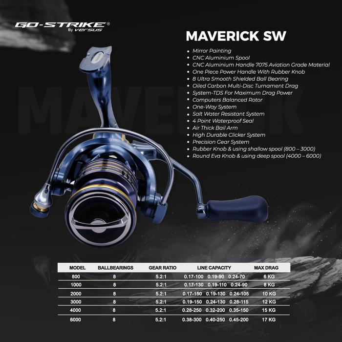 Reel Pancing GostrikeVersus Maverick SW 8BB Power Handle With Rubber Knob And Round Eva Knob - 800