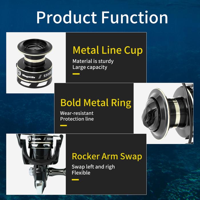 Bingolife Reel Pancing S1000-S7000 Tarik Maksimal 15kg 5.2: 1 Gulungan Memancing Metal Kecepatan Tinggi Roda - S1000
