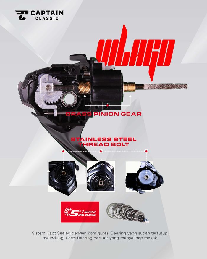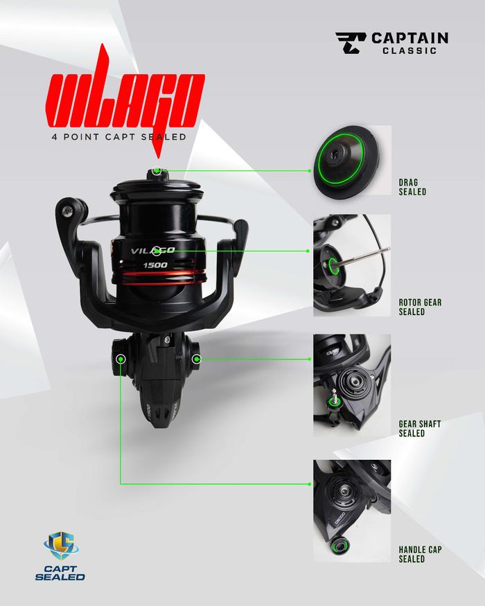 Reel Captain Classic VILAGO Black 1500 2500 3500 4500 Max Drag 8, 8, 10, 12kg Gear Ratio 5.2 : 1 - VILAGO, 3500