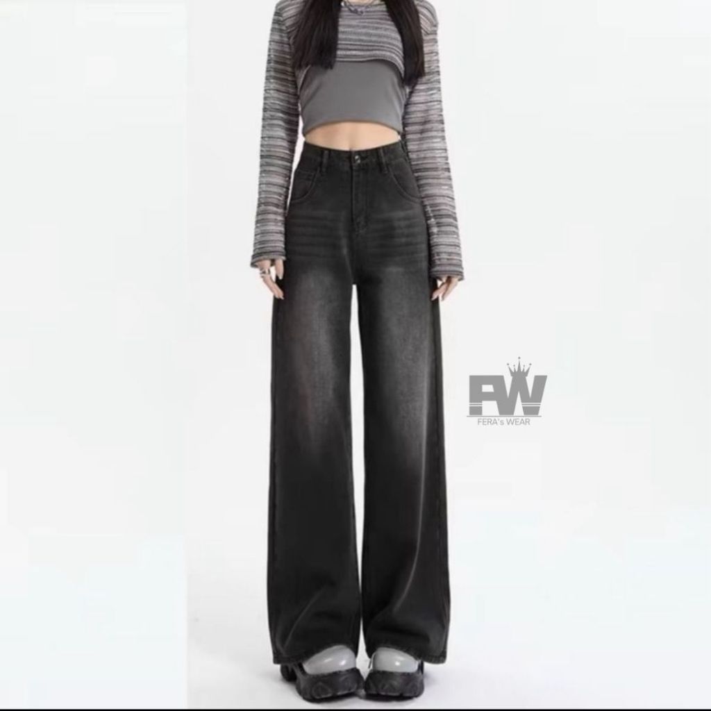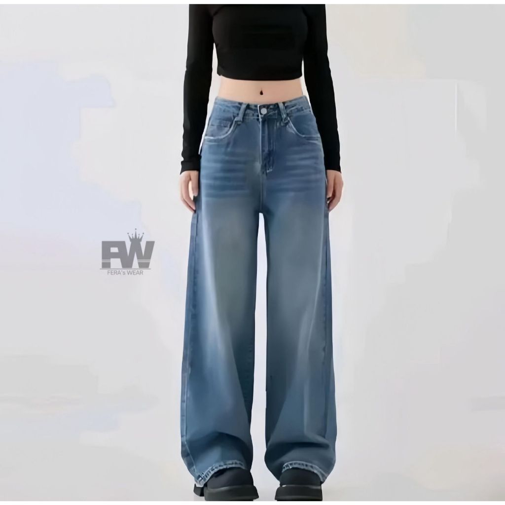 Highwaist Baggy Jeans Hangover Wanita - Celana Kulot Jeans Loosepants Gombrong Wanita Kekinian