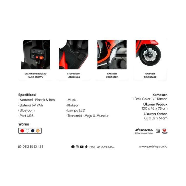 MOTOR AKI ANAK PMB 999 SCOOPY LISENSI RESMI HONDA MAINAN KENDARAAN TUNGGANG AKI SCOPY M 999 KADO