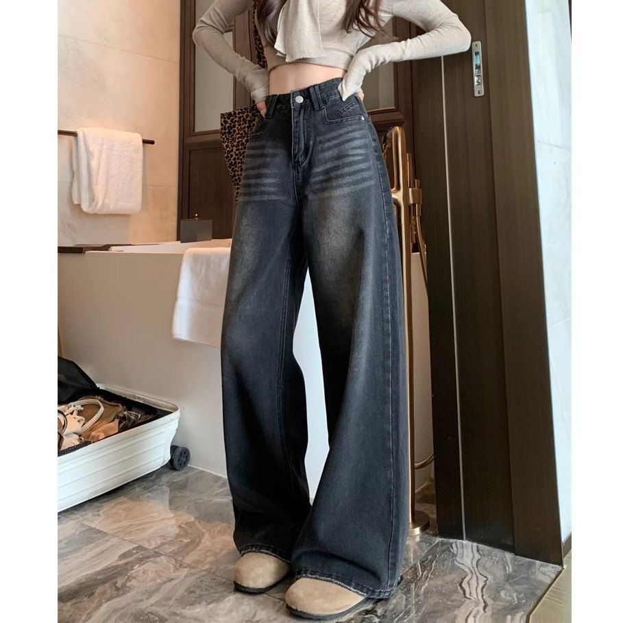 Veegirl 【LARIS MANIS】Jeans Kulot High Waist Korean Style Wanita Celana Jeans Baggy Panjang Jumbo Celana Jeans Wanita Kekinian