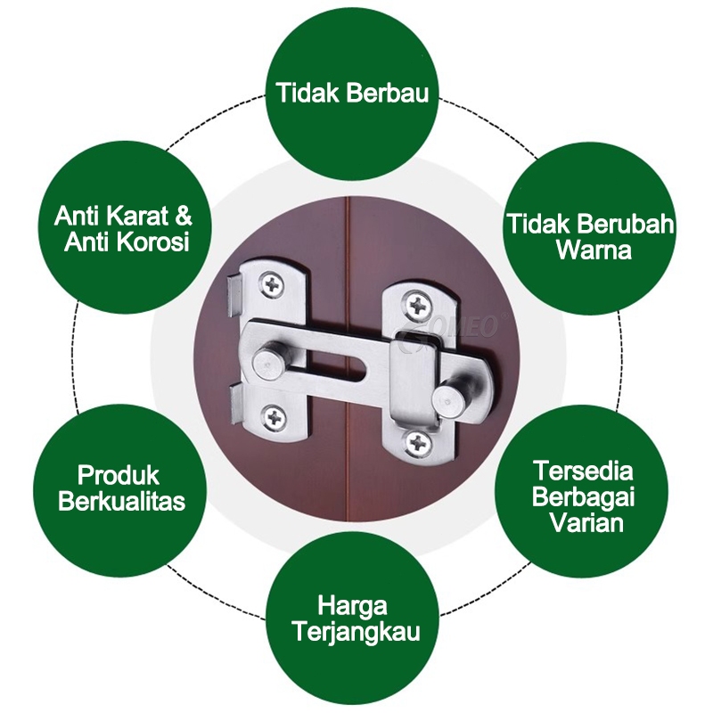 Grendel Kait Sliding Stainless GOMEO | Slot Kunci Pintu Geser Tekuk Siku Lurus 90° 180°