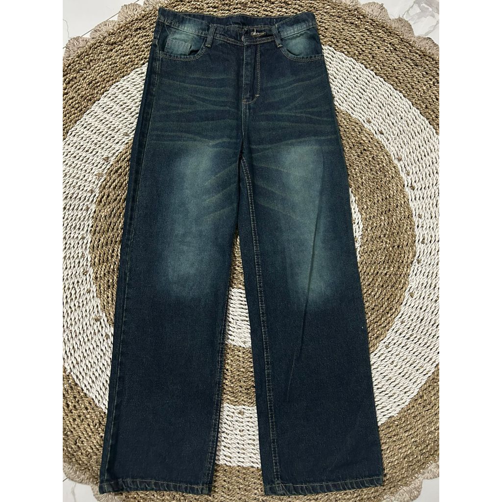 [ UNISEX ] Celana Jeans Gombrong Skena Wide Legs Loose Fit Bahan Denim Whisker