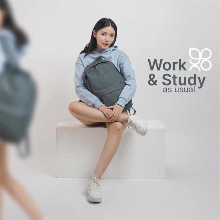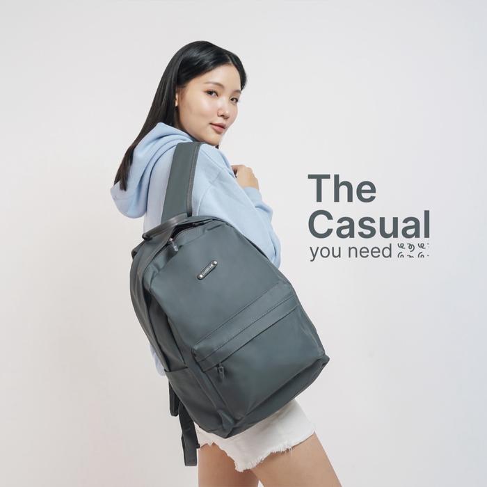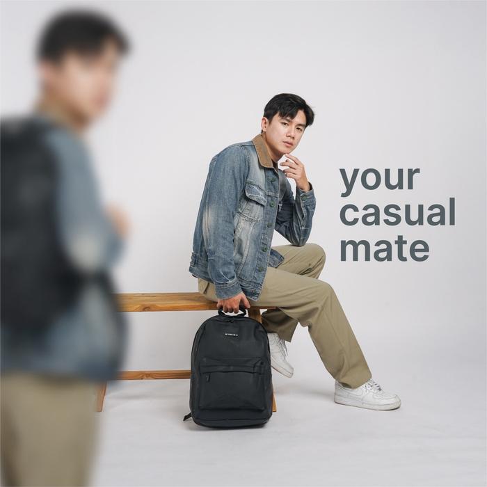 DP 0 CASUAL BACKPACK NYLON RANSEL PRIA WANITA RANSEL SEKOLAH KULIAH KERJA TRAVEL BLACK