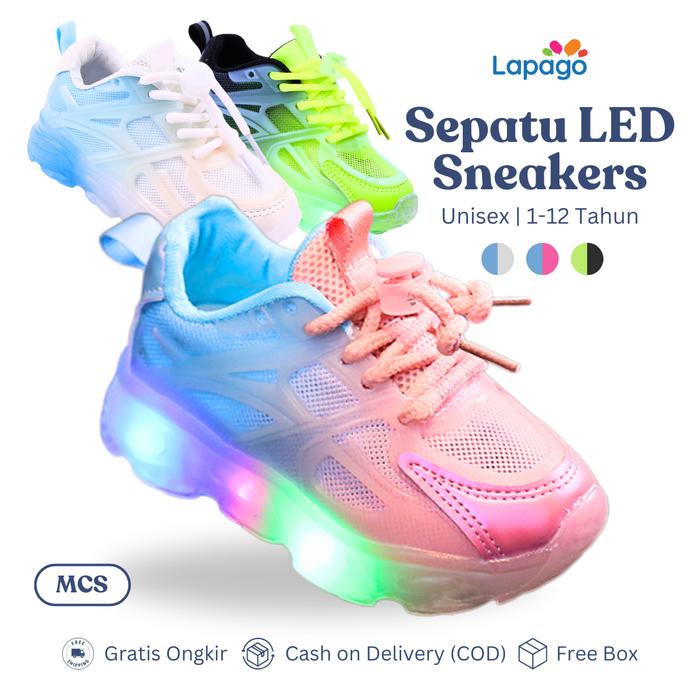 DP 0 LAPAGO SEPATU SNEAKER KAKI ANAK LAKI LAKI PEREMPUAN LED SPORT USIA 1 12 TAHUN TYPE MCS MCS2 PINK BIRU, 21 (135CM)