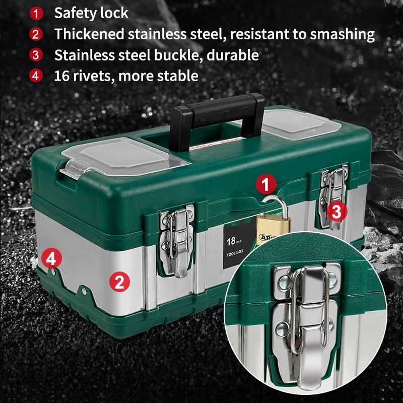 【JEGU】Tool Box Besar 12 15 18 20 Inch Tools Box Kotak Peralatan Besi /Tool Box Stainless Kuat 2 Tingkat/Toolkit Box Kota