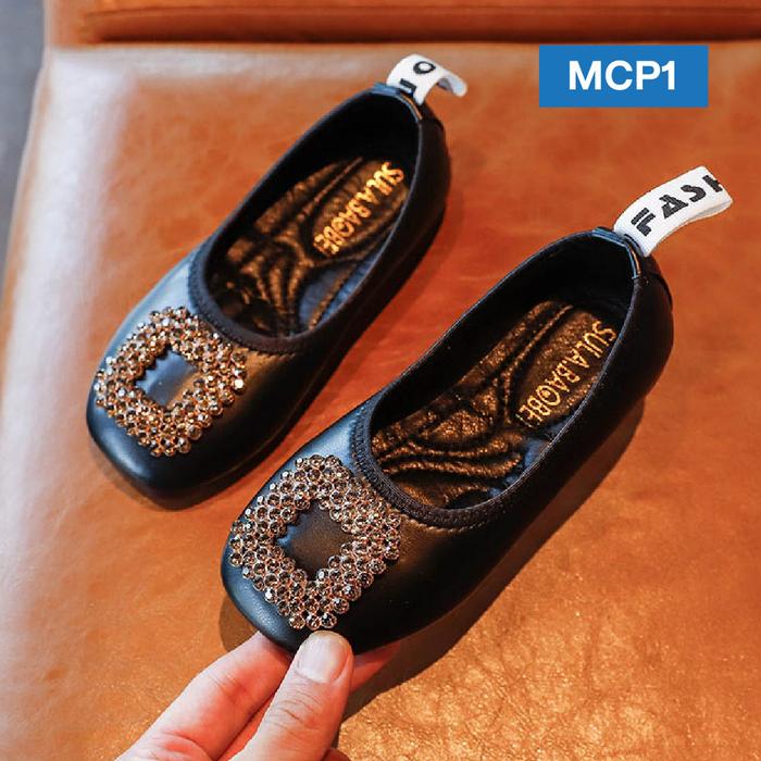 DP 0 LAPAGO SEPATU FLAT ANAK PEREMPUAN CASUAL PESTA USIA 1 TAHUN 8 TAHUN TYPE MCP KAKI KIDS MCP1 HITAM, 21 (133CM)