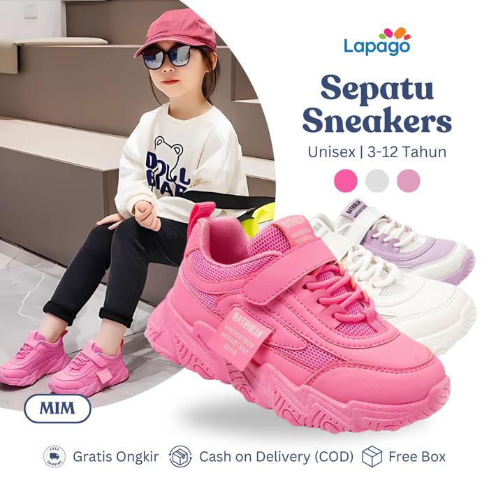DP 0 LAPAGO SEPATU SNEAKER CASUAL ANAK LAKI LAKI PEREMPUAN MODEL USIA 3 12 TAHUN TYPE MIM MIM PINK, 27