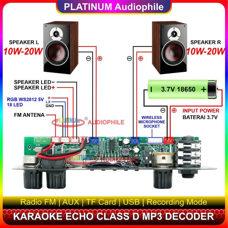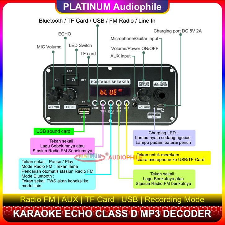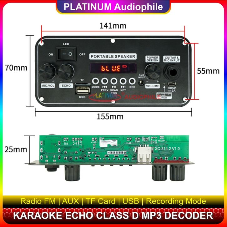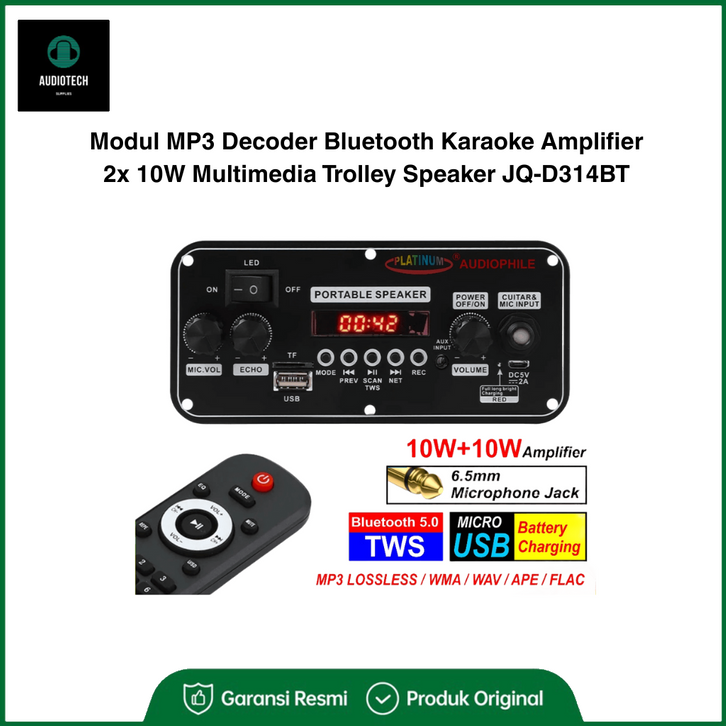 Modul MP3 Decoder Bluetooth Karaoke Amplifier 2x 10W Multimedia Trolley Speaker JQ-D314BT