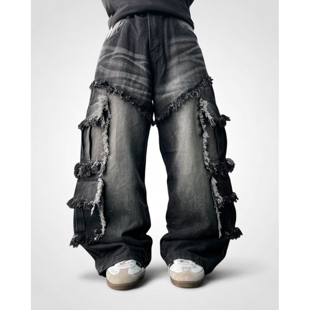 Bawwa Santai | Celana CARGO Baggy Jeans VOL 3 | BLACK Wash fading | THIAGO Series | Celana Cargo Jeans Denim| Celana Gombrang | Cargo pants | Baggy pants | celana skena