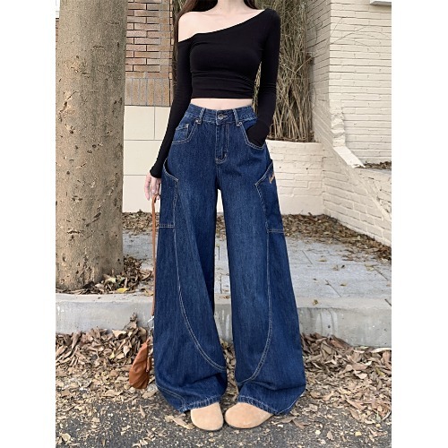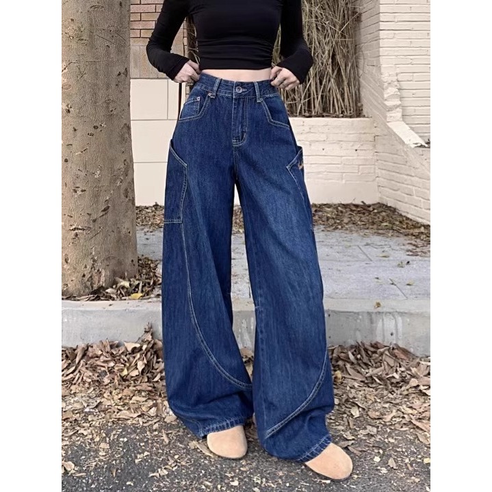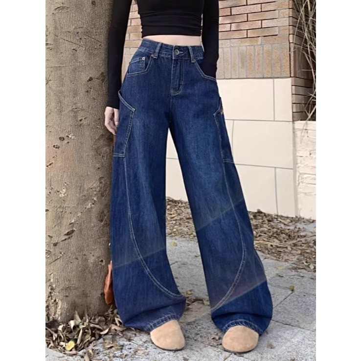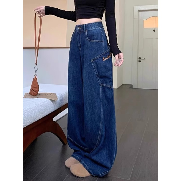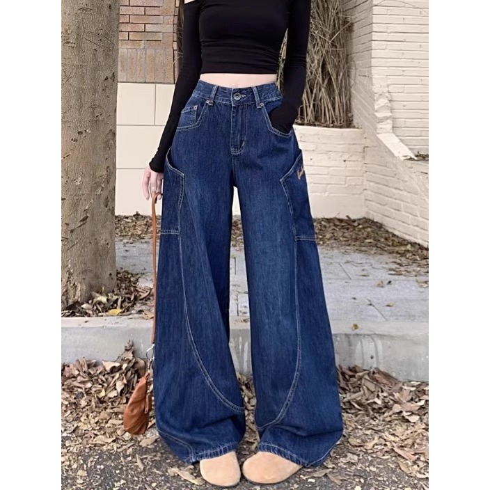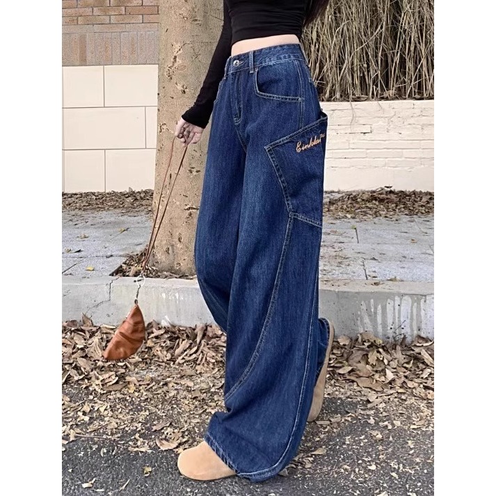 Celana Kargo Jeans Celana Panjang Kaki Lebar Longgar Wantia kulot Baggy Loose korean style