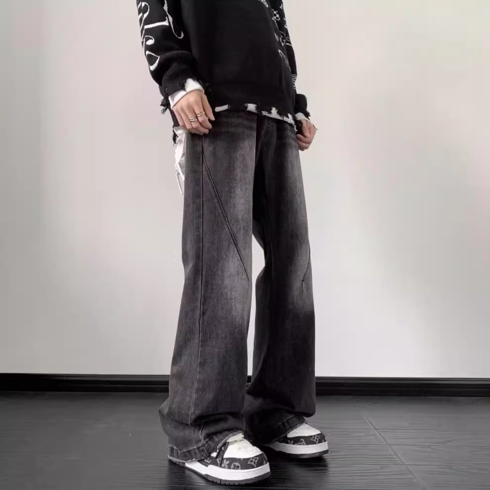 X-Gent celana gombrong abu hitam jeans pria baggy kulot denim pants cowok