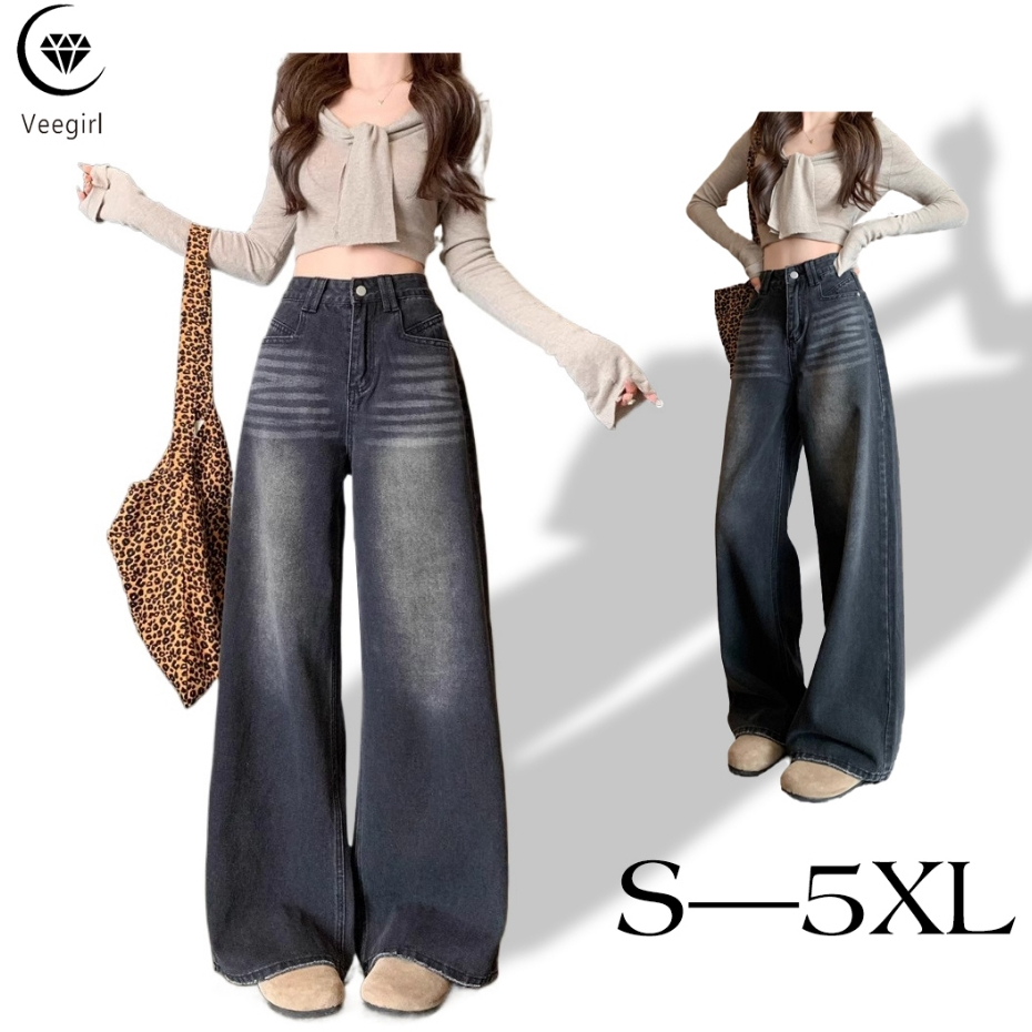 Veegirl 【LARIS MANIS】Jeans Kulot High Waist Korean Style Wanita Celana Jeans Baggy Panjang Jumbo Celana Jeans Wanita Kekinian