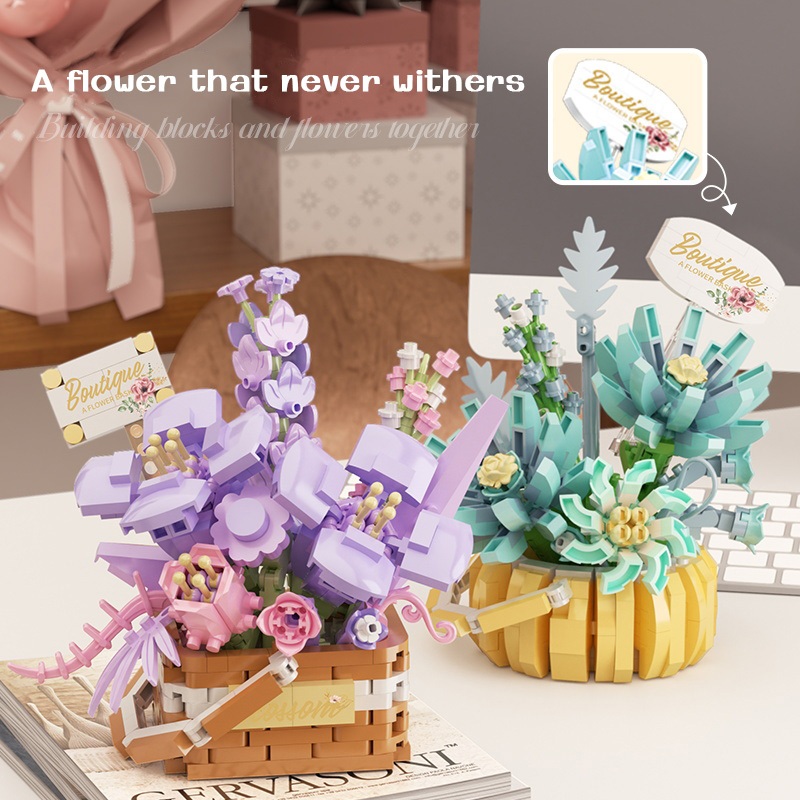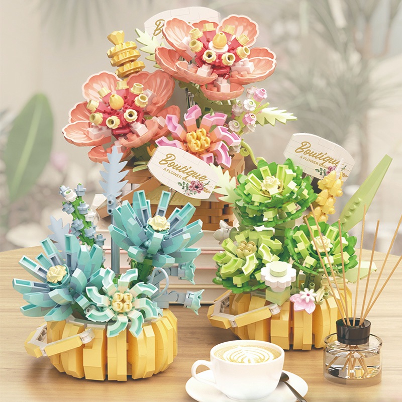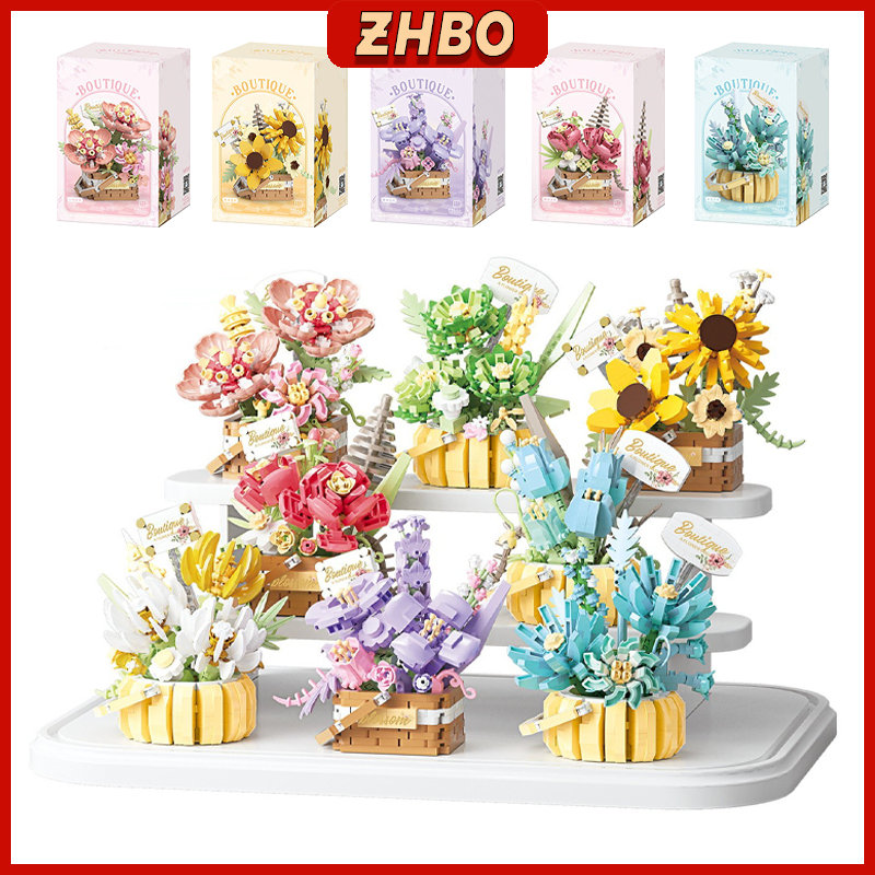 ZHBO Mainan Brick Bunga Plant DIY Flower Bouquet Mainan Balok Pot Tanaman Mainan Anak Perempuan