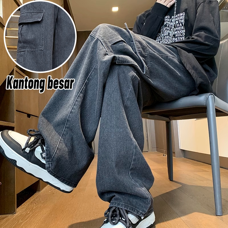 Celana jeans cargo baggy jeans pria korean style baggy pants Gombrong Celana baggy jeans cargo pants pria oversize Nyaman celana skena pria