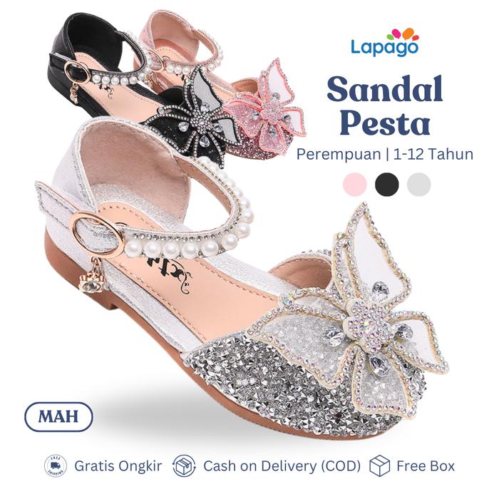 DP 0 LAPAGO SANDAL SEPATU ANAK PEREMPUAN PESTA MODEL BARU SIZE 21 35 TYPE MAH MAH3 HITAM, 21 (135CM)