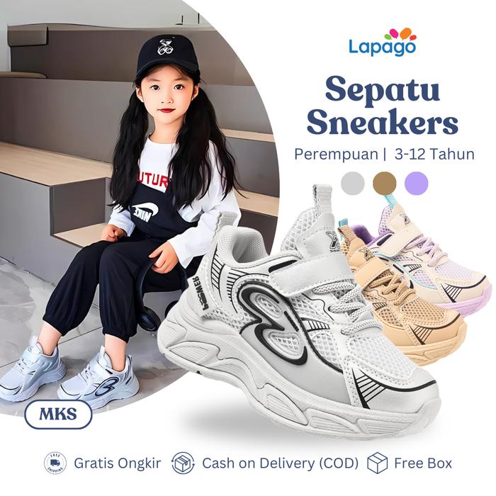 DP 0 LAPAGO SEPATU SNEAKER SPORTY ANAK LAKI LAKI PEREMPUAN UNISEX USIA 3 12 TAHUN TYPE MKS MKS UNGU, 26