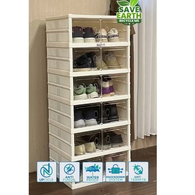 NAPOLLY Rak Sepatu Lipat Rak Serbaguna Plastik KUAT KOKOH PUTIH Transparant