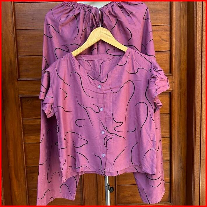 Setelan Leher V Bahan Rayon Piyama Tidur Kekinian Baju Celana Panjang Wanita Dewasa