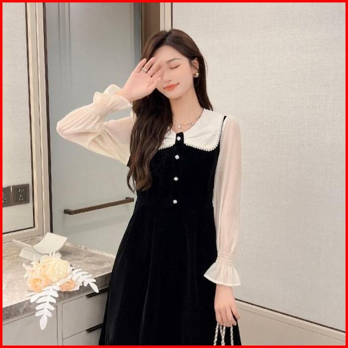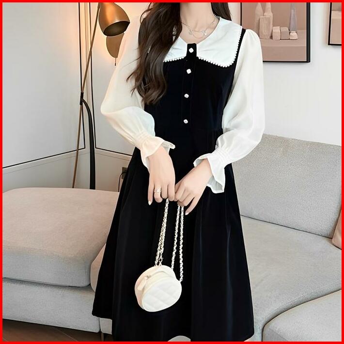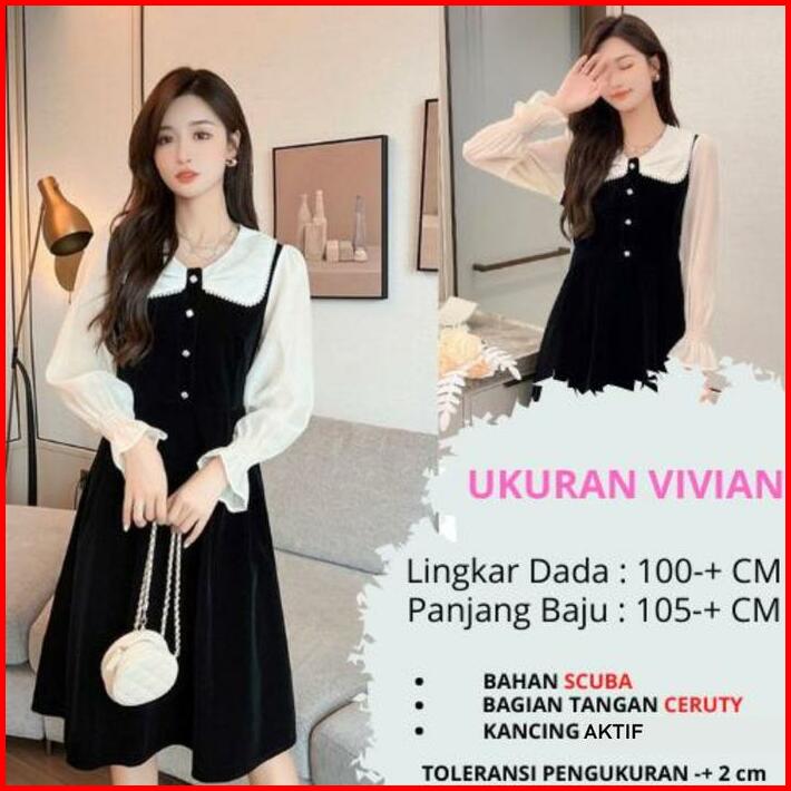 Bless Vivian Dress Wanita Style Lengan Balon Scuba Baju Gaun Casual Pesta Simple Midi