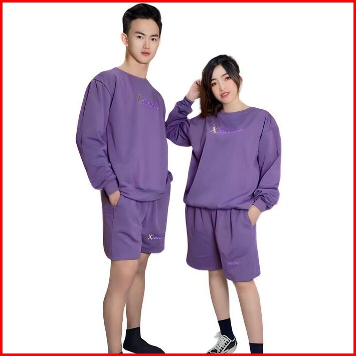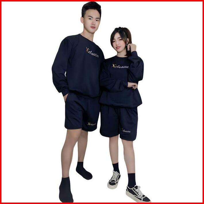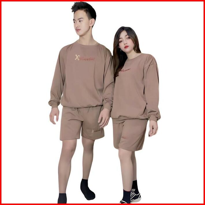 Setelan Fleace Sweater Cowok Cewek Sweater Lengan Panjang Bordir Celana Pendek Nina Atasan Baju