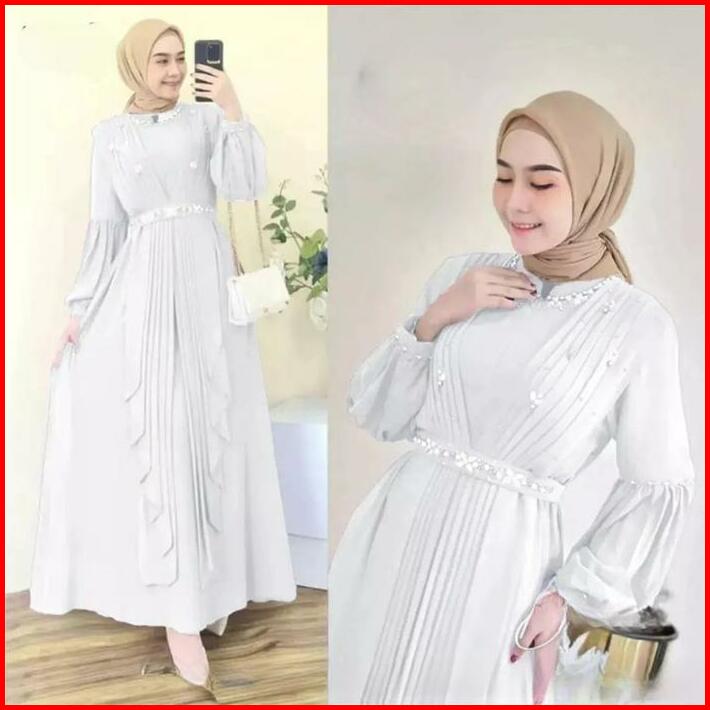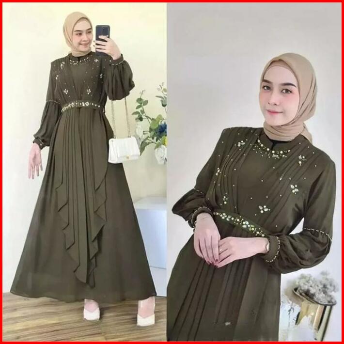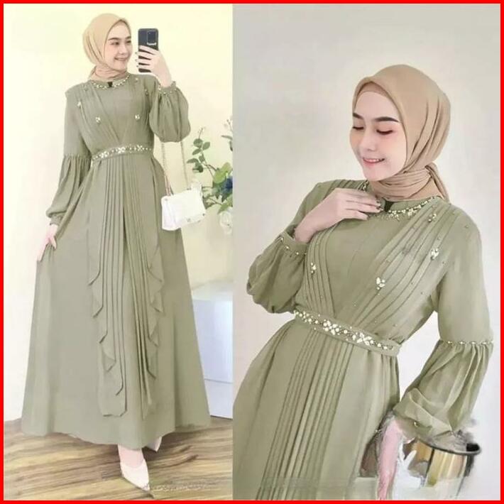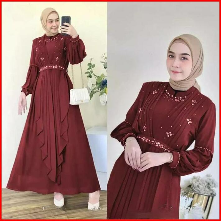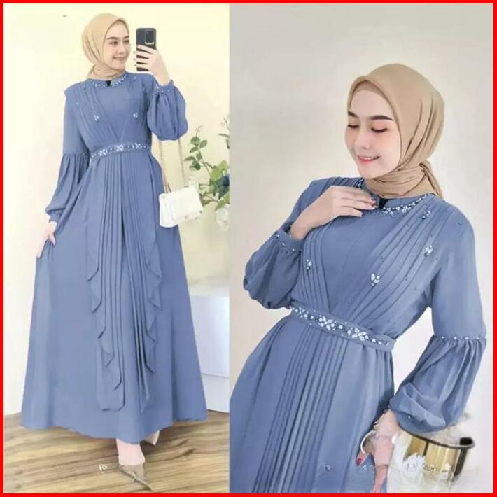 Model Baju Gamis Terbaru Benecia Maxy Aksen Payet Mewah Matt Ceruty Babydoll Full Furing