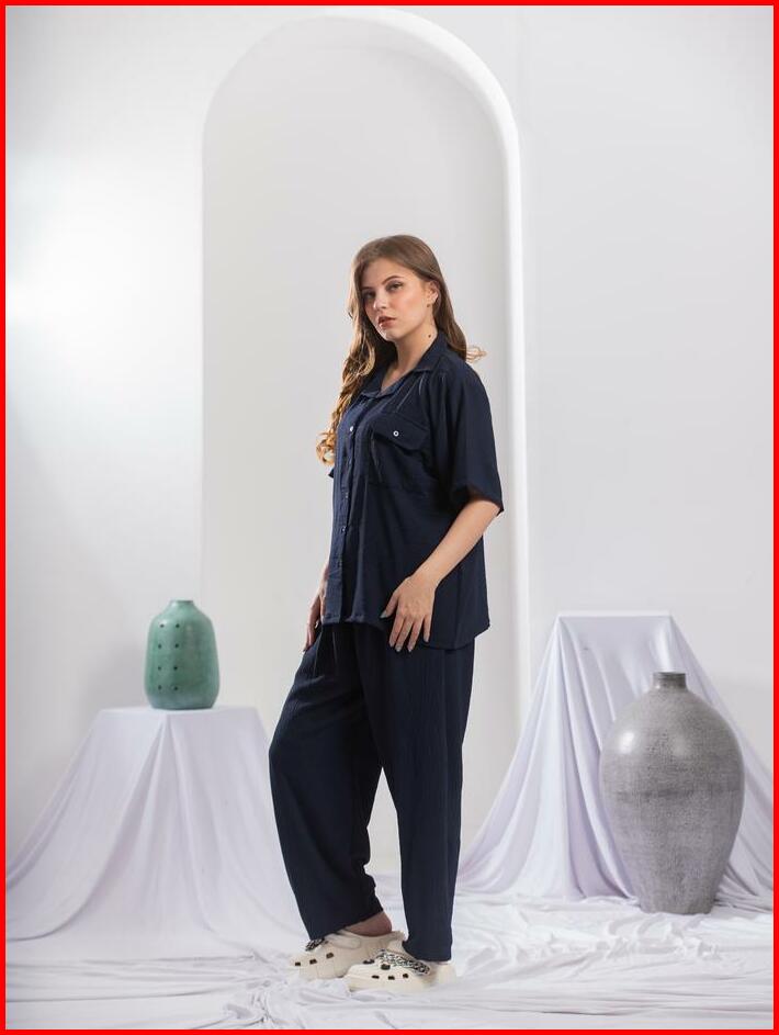 Ld 120 Dan 140 Baju One Set Setelan Wanita Tangan Pendek Kerah Super Jumbo Crinkle