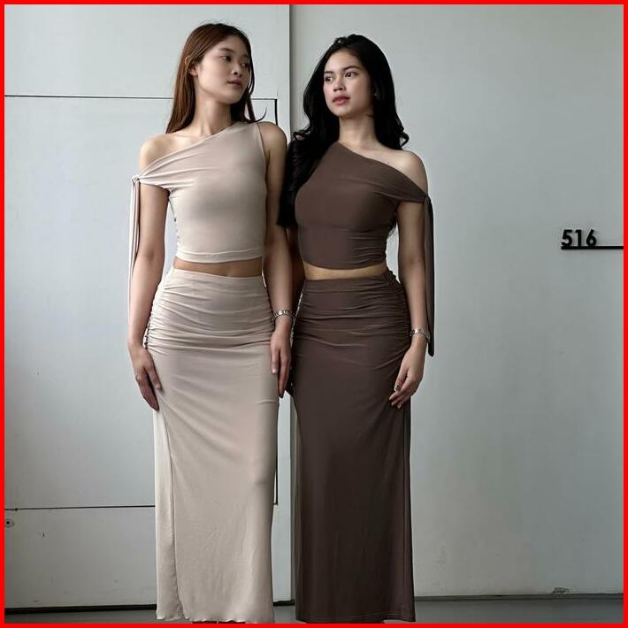 Gwyneth One Set Atasan Wanita Stretchy Coquette Korean Tie Ribbon Shirt Setelan Dress Panjang Wanita Top Bisa Di Beli Te