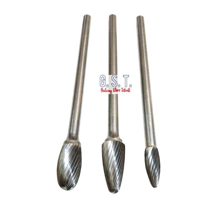 3pcs mata cuner tuner rotary burs batang 6mm long 120mm mata porting searah carbide baru