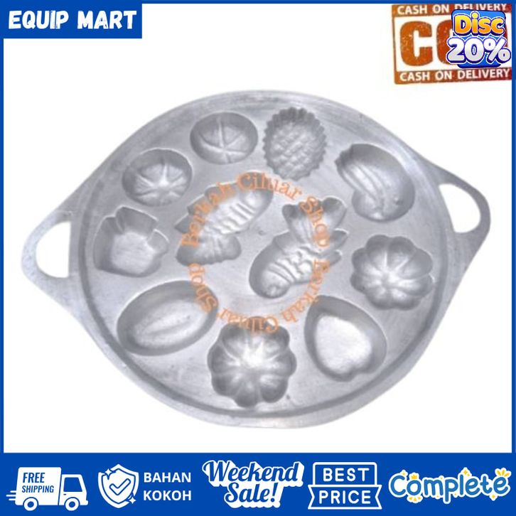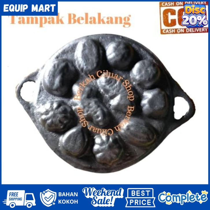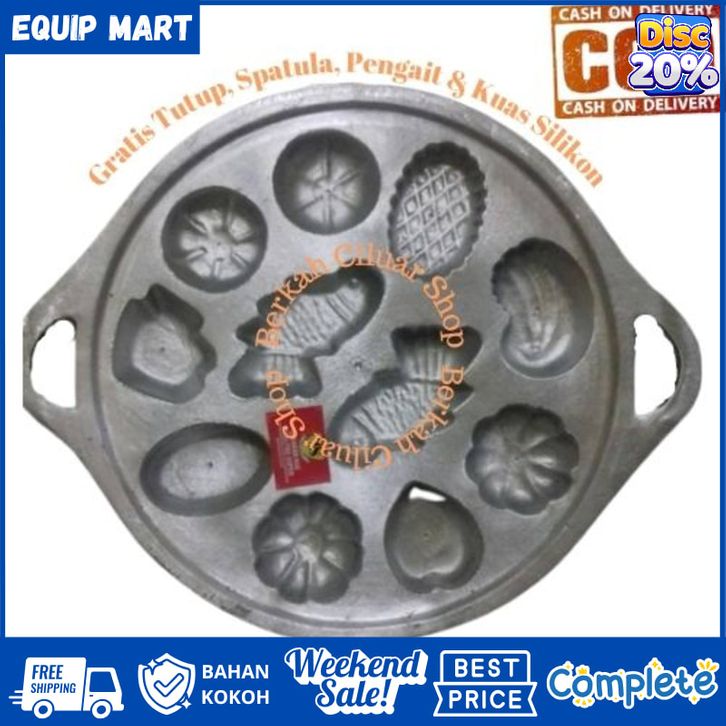 Cetakan Kue Cubit Kerang Isi 11 Lubang Dengan Tutup Gratis Kuas, Spatula, Dan Pengait