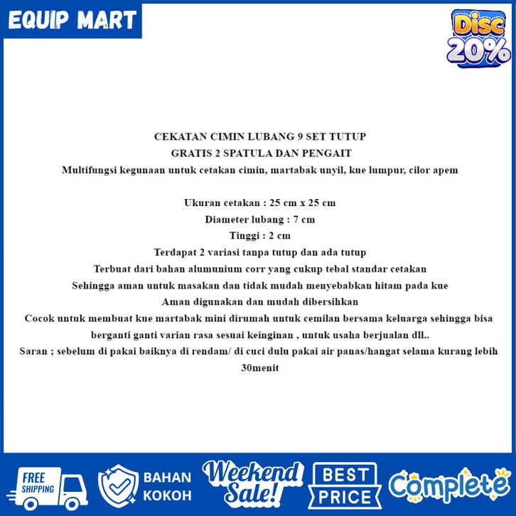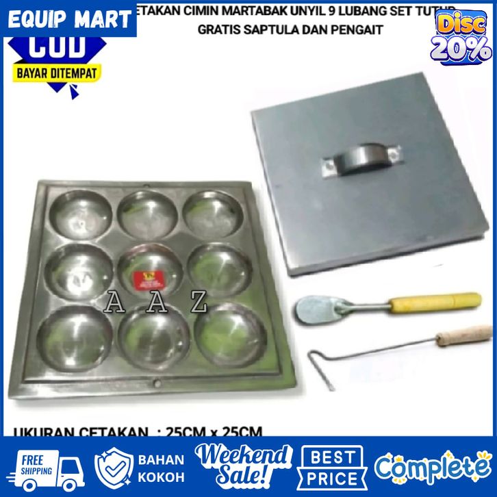 Cetakan cimin / cetakan kue loyang cimin 9 lubang set tutup gratis pengait dan spatula kue