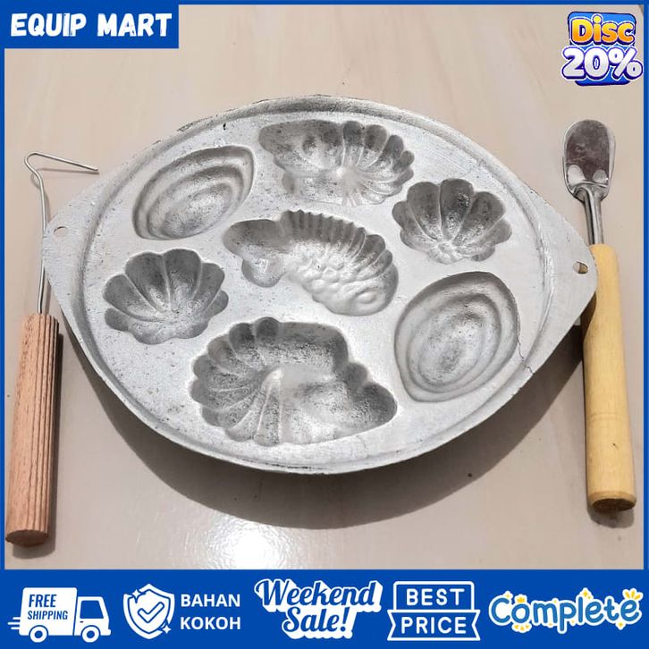 Paket Cetakan Baklor Lubang 12 Cetakan Kue Cubit Kerang Ikan Cetakan Martabak mini Uk 18 Free Pengait Sutil Parutan