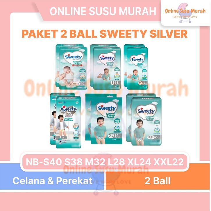 SWEETY SILVER PANTS PAKET 2 BALL S 38 M 32 L 28 XL 24 XXL 22 TAPE NBS40 POPOK CELANA & PEREKAT PPKS - Ibu dan Bayi