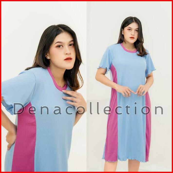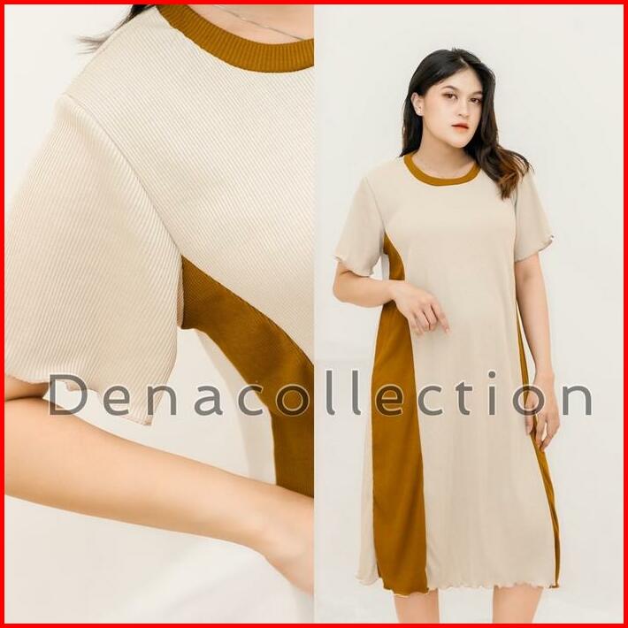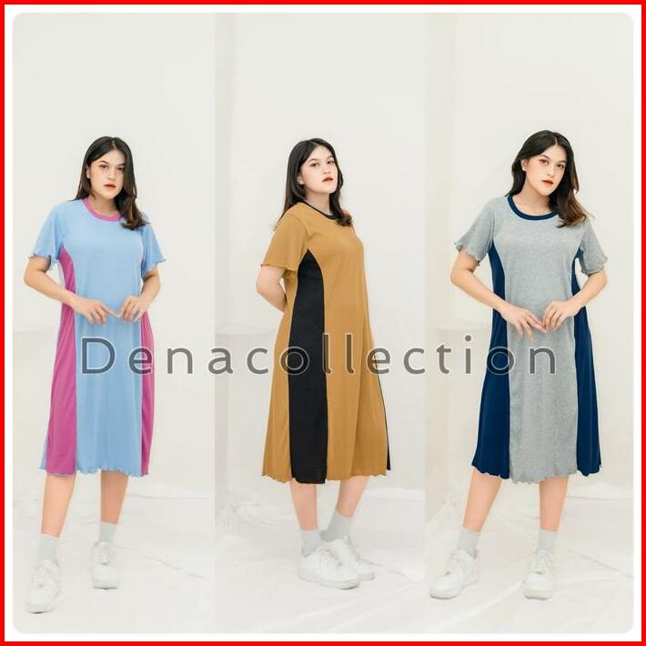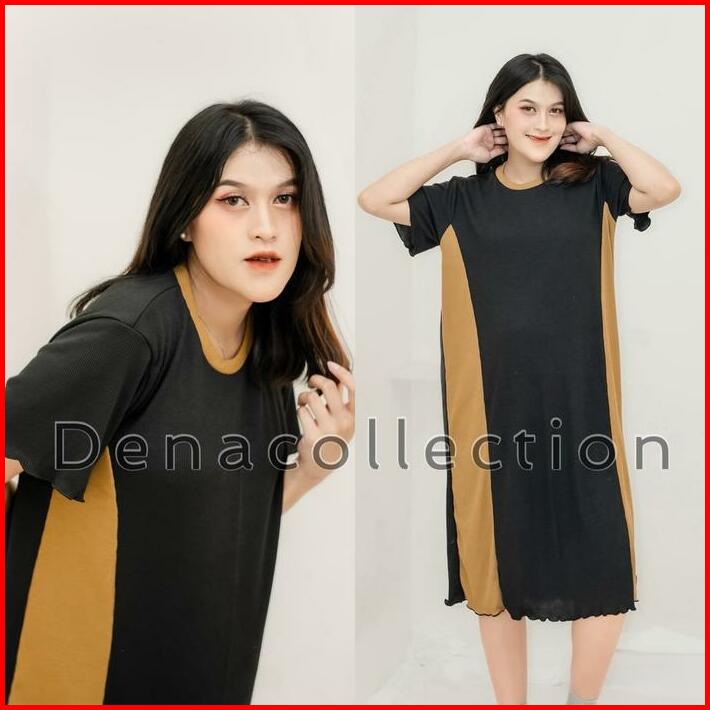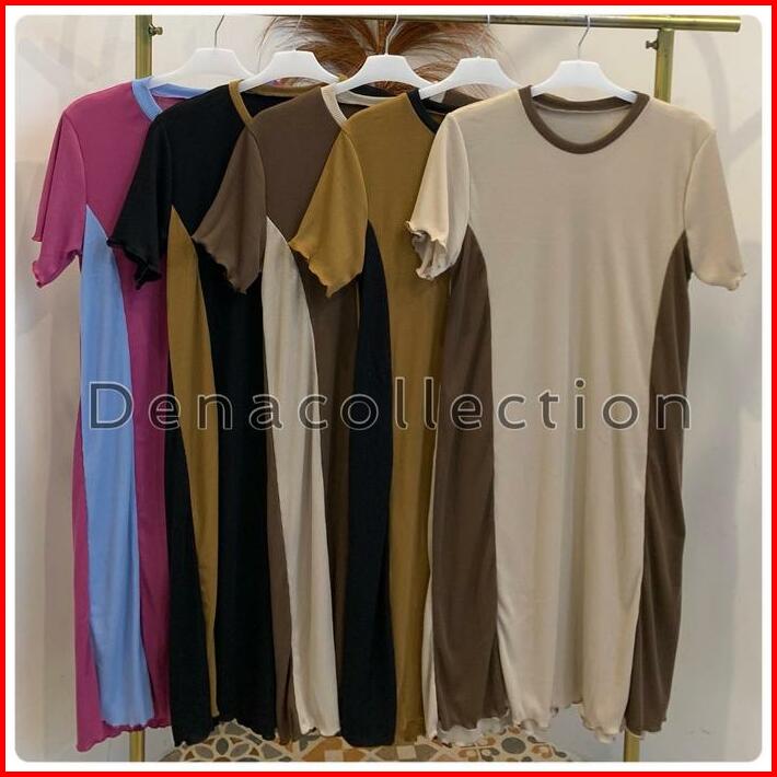 Mazena Daster Knit Rib Kombinasi Dua Warna Dress Wanita Viral 2024 Nyaman Basic
