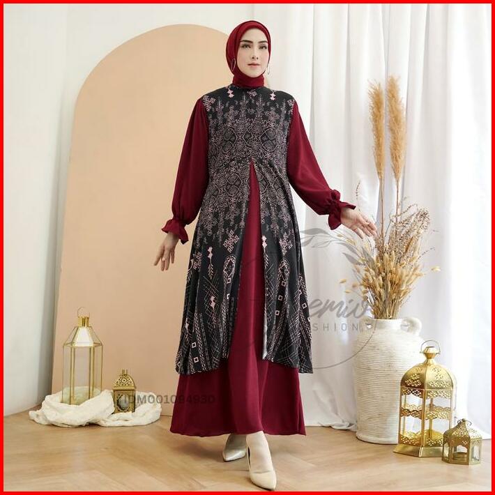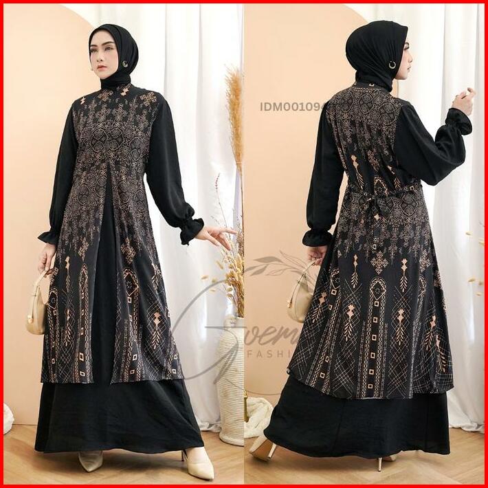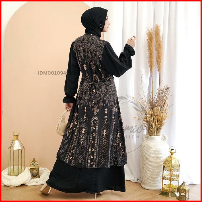 Ready Bless Gamis Karina Busui Friendly Tali Pinggang Catoon Rayon Muslim Wanita Dress Syari Motif Simple Dewasa Casual