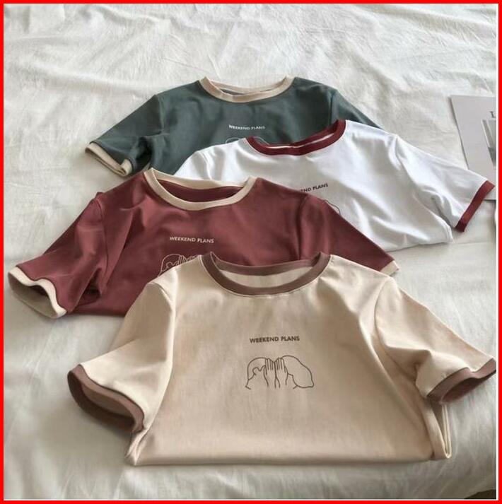 Weekend Plans Kaos Wanita Lengan Pendek 2024 Musim Panas Gaya Korea Kasual Baru By Nuritari Combed Fit Nyaman