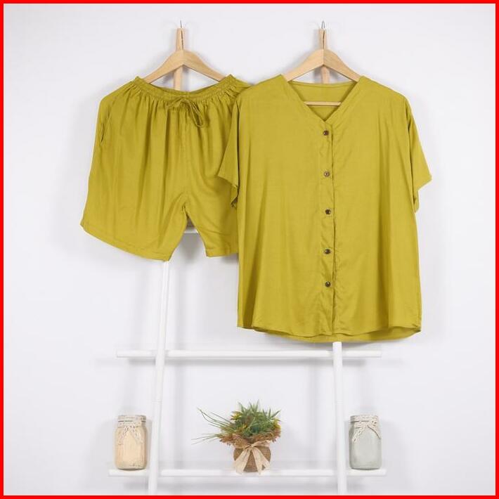 Haruna One Set Rayon Setelan Piyama Wanita Dewasa Celana Pendek Busui Kekinian