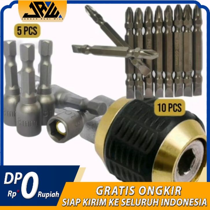 Paket lengkap 16pcs Keyless Kepala Bor Hexagonal, 10pcs mata obeng magnet, 5 pcs Mata kunci roofing 8mm