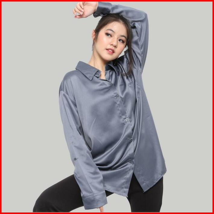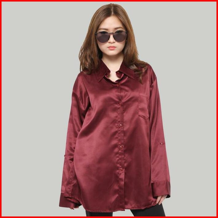 Monellina 00653 Kemeja Oversize Wanita Lengan Panjang Satin