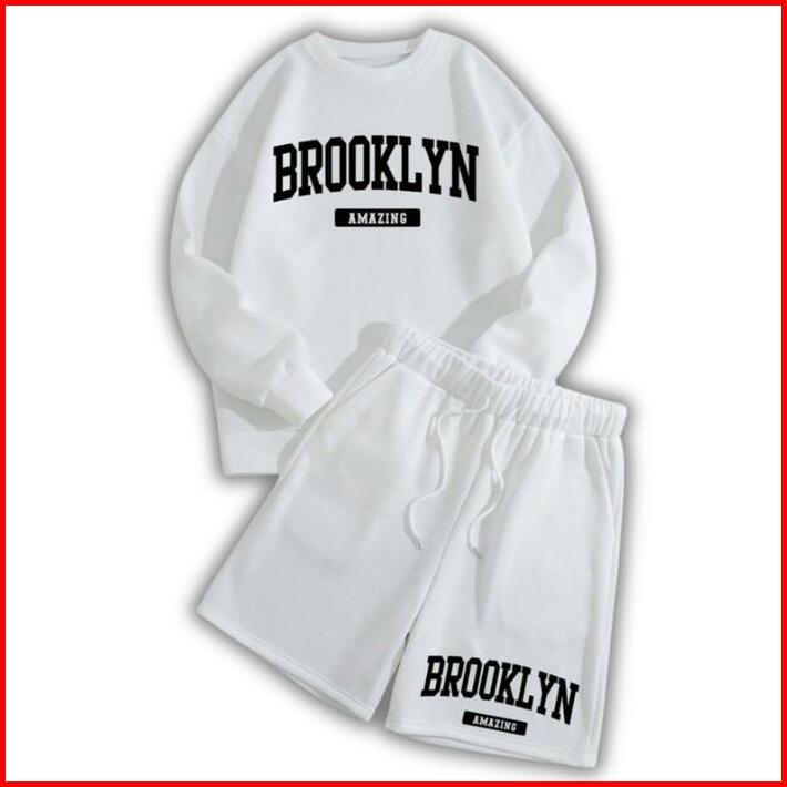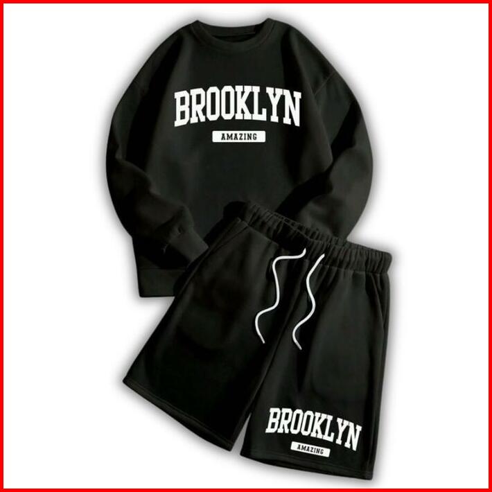 Strees One Set Crewneck Shortpant Brookamazing Setelan Berbahan Kain Fleece Lembut Adem Size M-xl