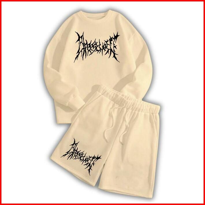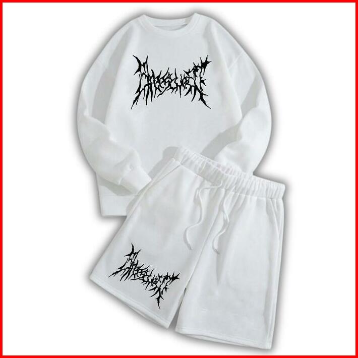 Strees One Set Crewneck Shortpant Metals Untuk Pria Wanita Setelan Berbahan Kain Fleece Lembut Adem Size M-xl